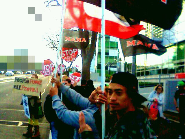 In the last few hours as National pushed its asset sales through parliament activists mounted a picket of Mighty River Power in Auckland, the first electricity company due to be privatised.